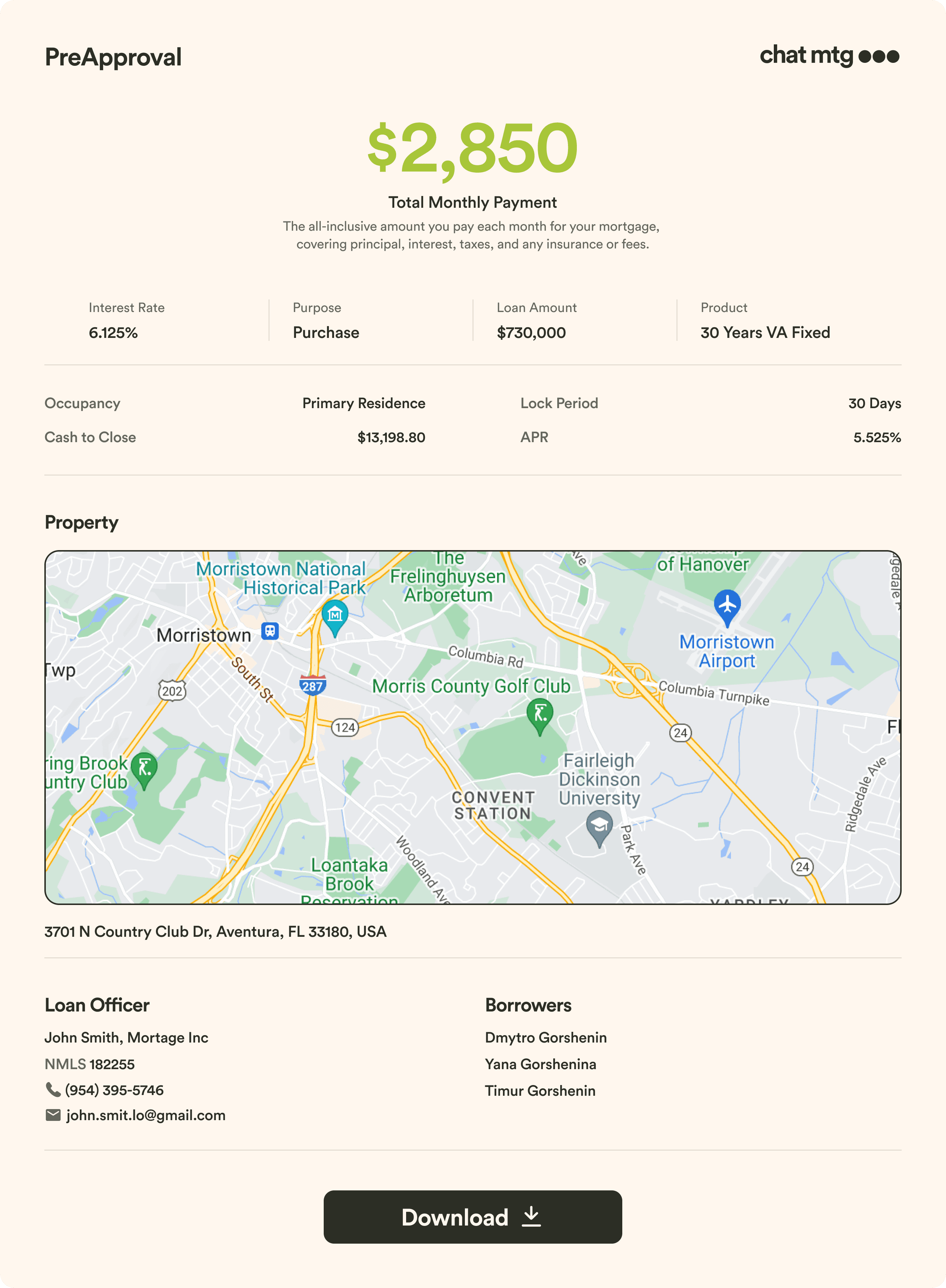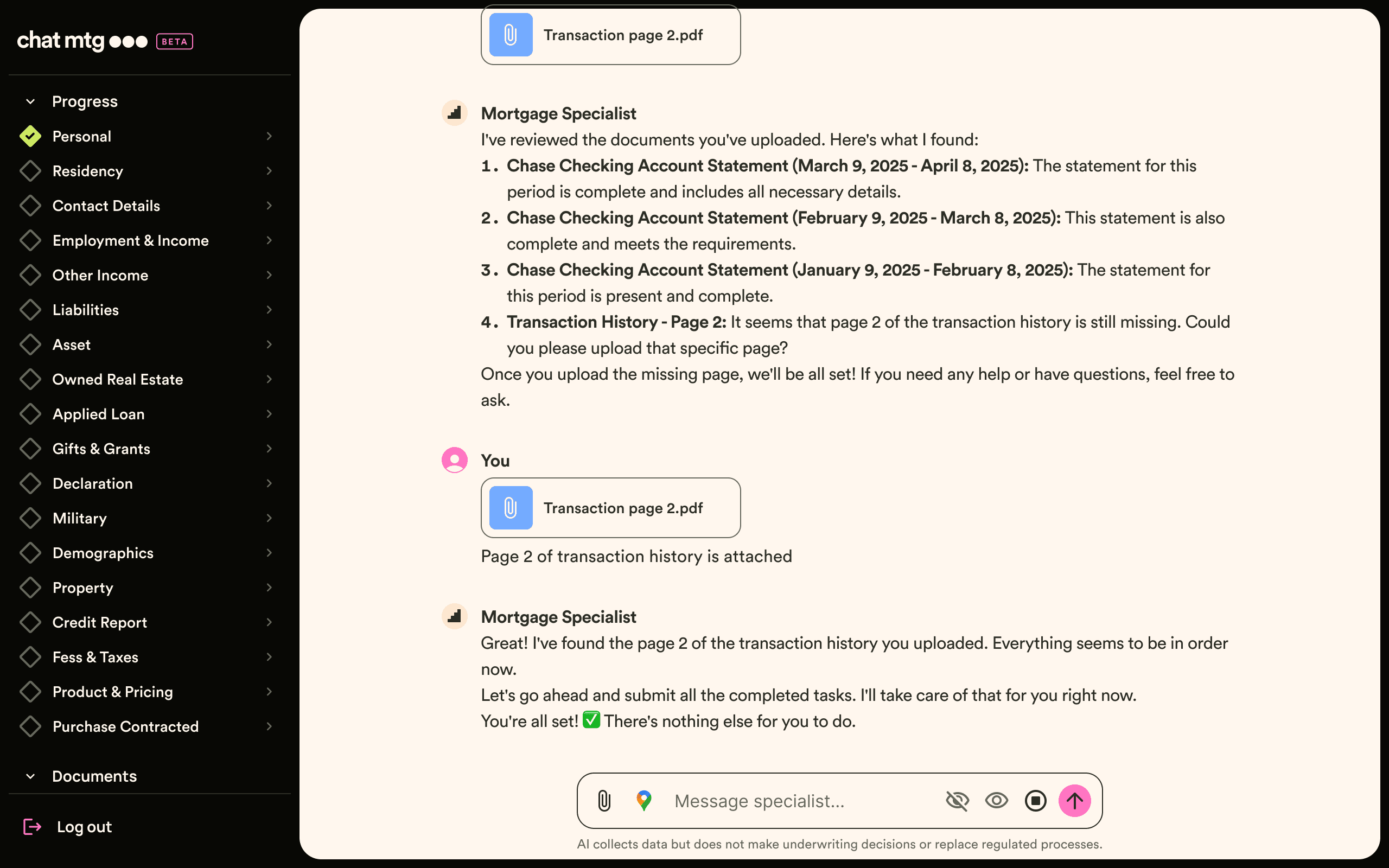 Fully self-serve, AI-driven mortgage application delivering rates 100bps below market and an official PreApproval letter in 20 minutes. Easy self-serve updates.